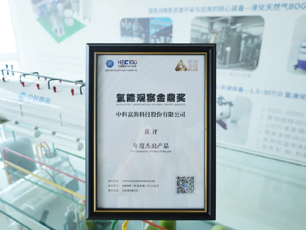 4月22日,CHEC2025第五屆世紀(jì)氫能與燃料電池大會在上海圓滿結(jié)束。會議以“聚焦氫未來,助力碳中和”為主題,旨在打通氫能產(chǎn)業(yè)各環(huán)節(jié),推動產(chǎn)業(yè)鏈發(fā)展。會議現(xiàn)場揭曉2025氫能觀察“金鼎獎(jiǎng)”名單,中科富海憑借在氫能領(lǐng)域的產(chǎn)品創(chuàng)新研發(fā)和產(chǎn)品應(yīng)用示范等方面的實(shí)踐成果,榮獲“金鼎獎(jiǎng)·年度杰出產(chǎn)品”獎(jiǎng)。氫能產(chǎn)業(yè)“金鼎獎(jiǎng)”是...